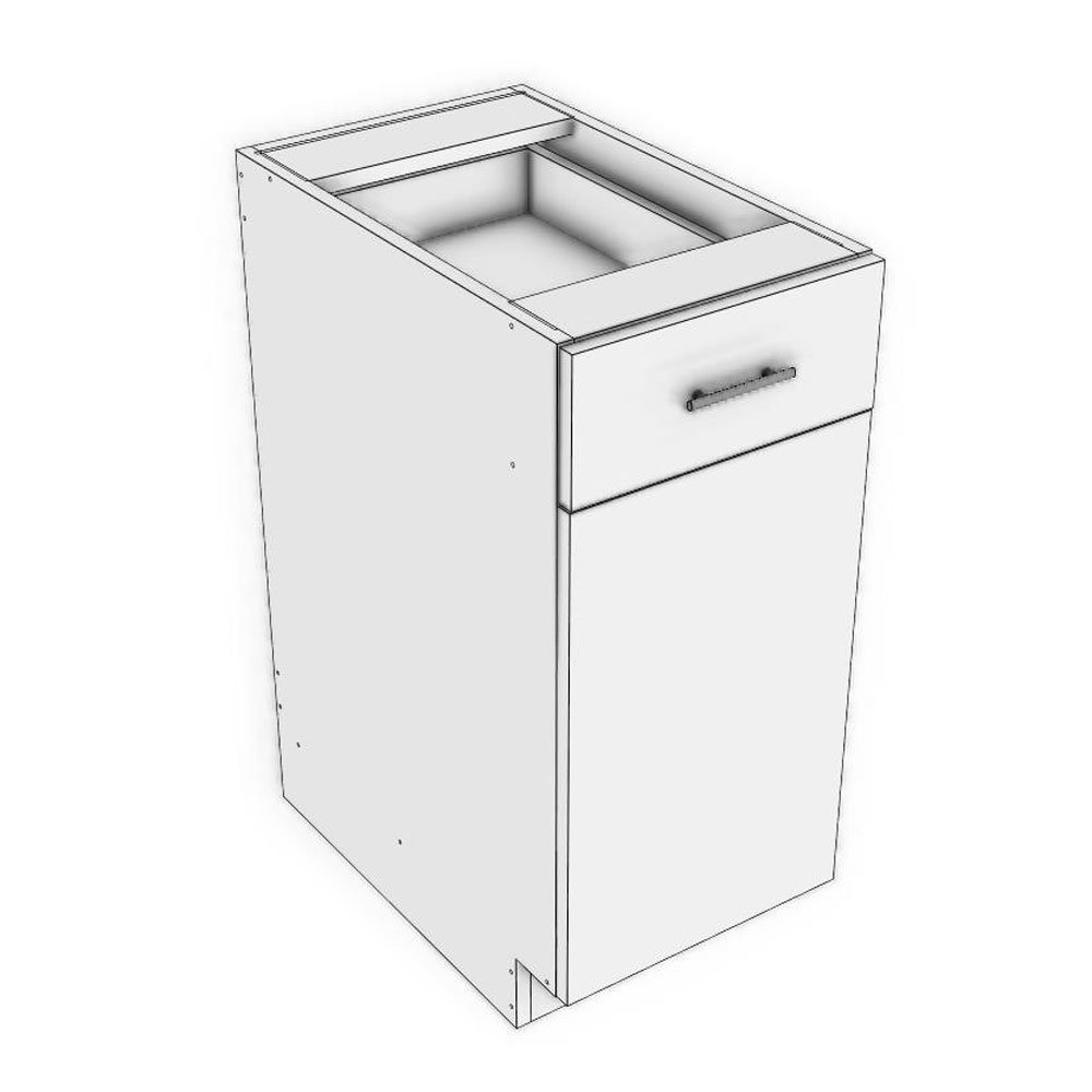 15" width x 24" depth x 34 1/2" height base cabinet with 1 drawer and under neat space for pull out trash (sold separately)