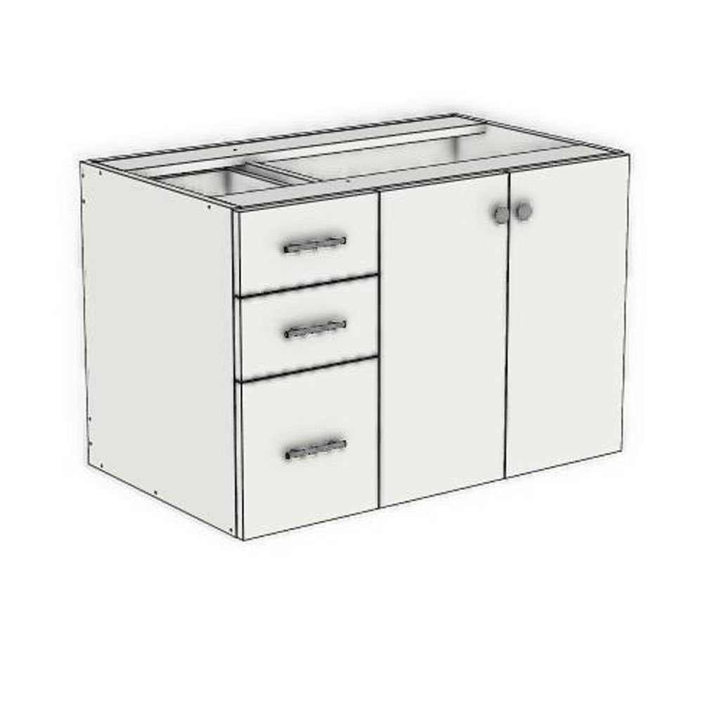 36" width x 21 3/4" depth x 24" height floating vanity cabinet with 3 drawers on the left side and pair of doors