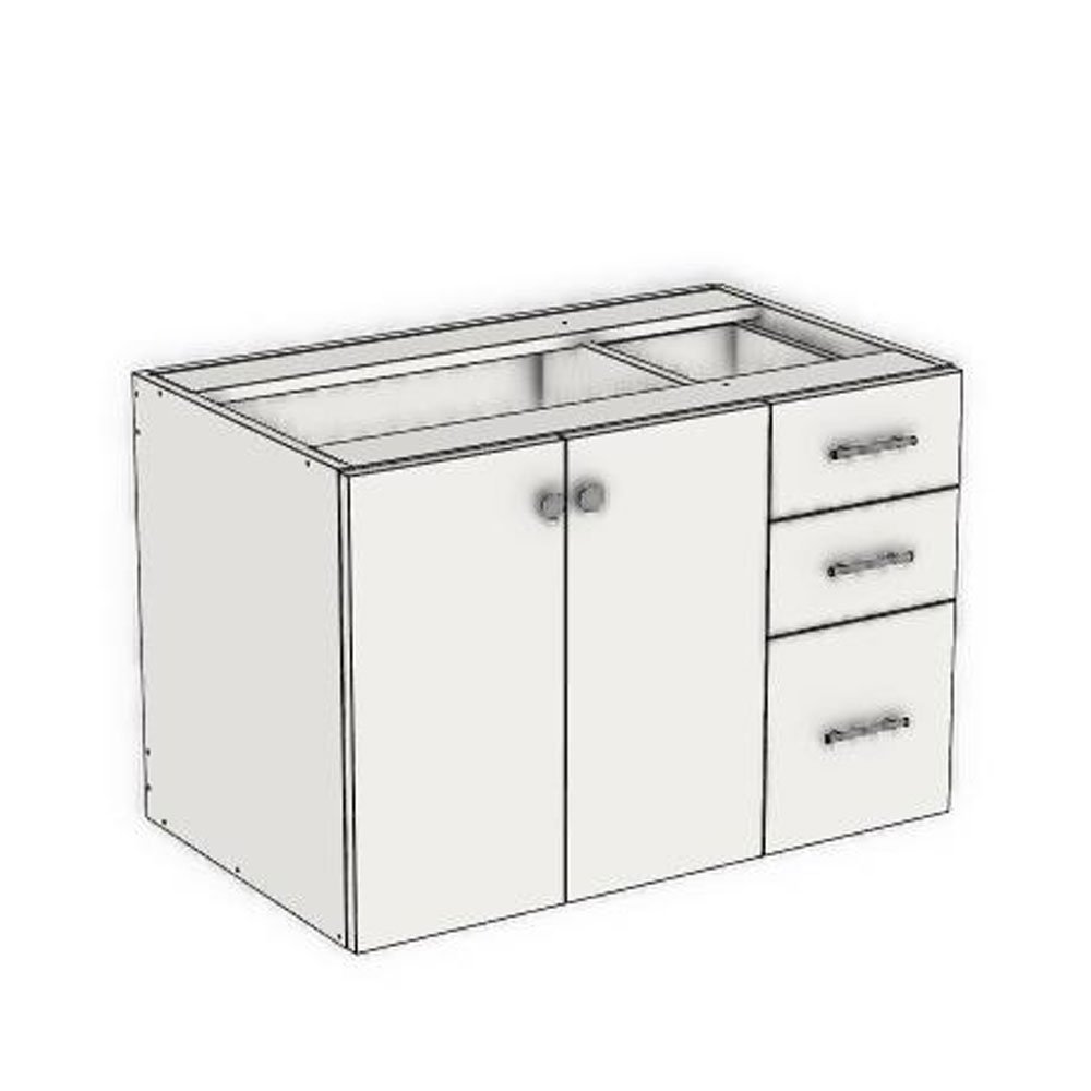 36" width x 21 3/4" depth x 24" height floating vanity cabinet with 3 drawers on the right side and pair of doors
