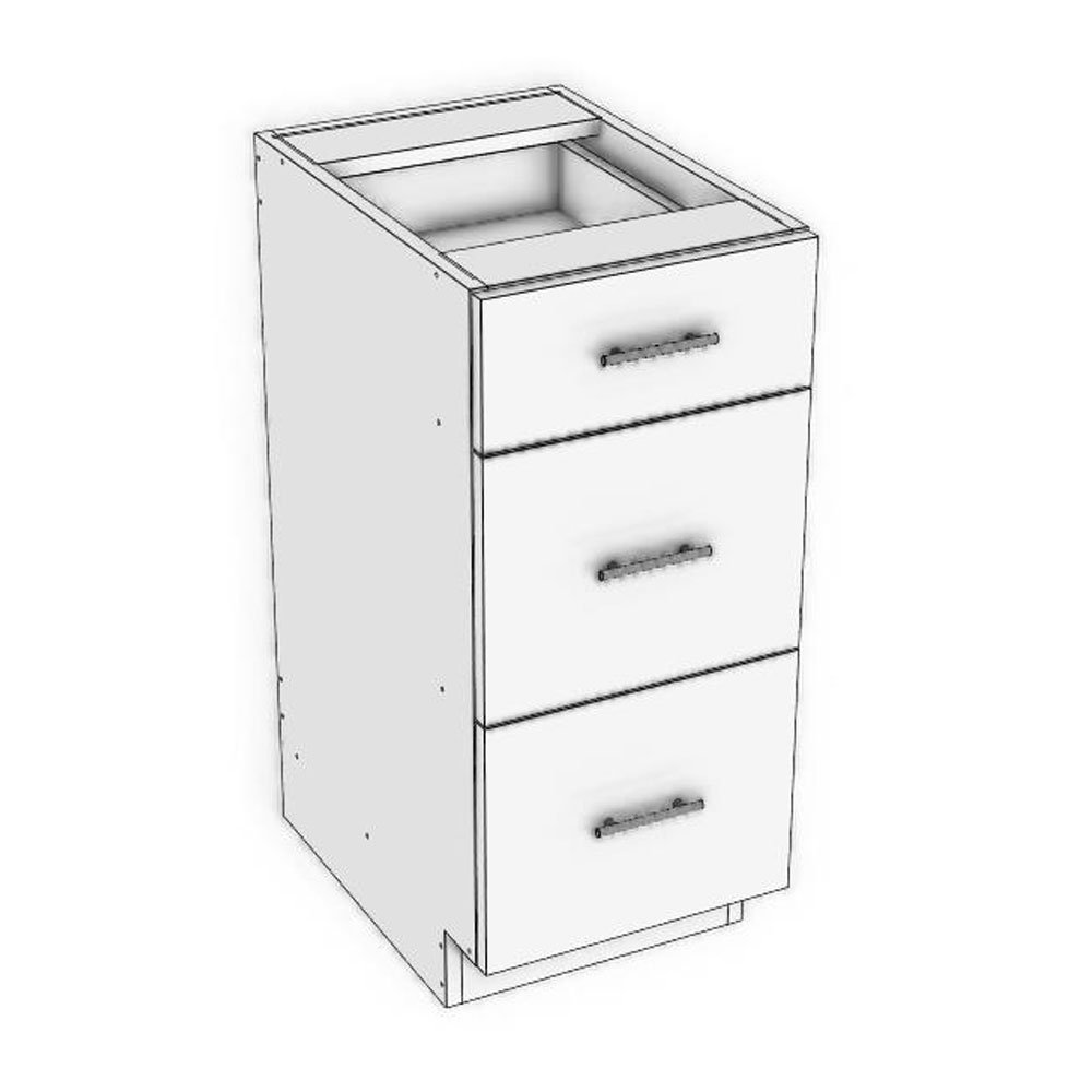 12" width x 24" depth x 34 1/2" height base cabinet with 3 drawers