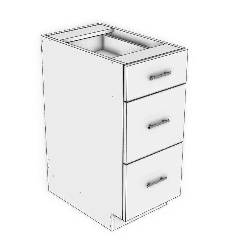 15" width x 24" depth x 34 1/2" height base cabinet with 3 drawers