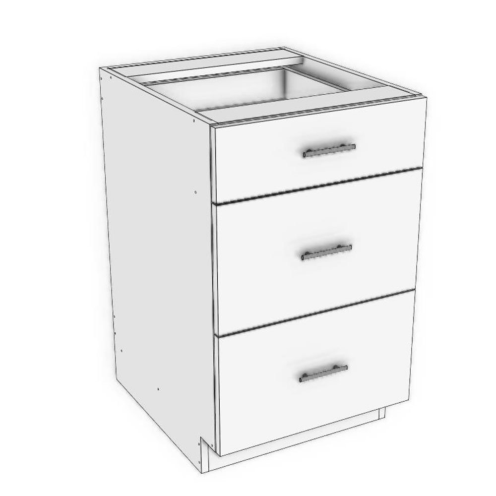 21" width x 24" depth x 34 1/2" height base cabinet with 3 drawers