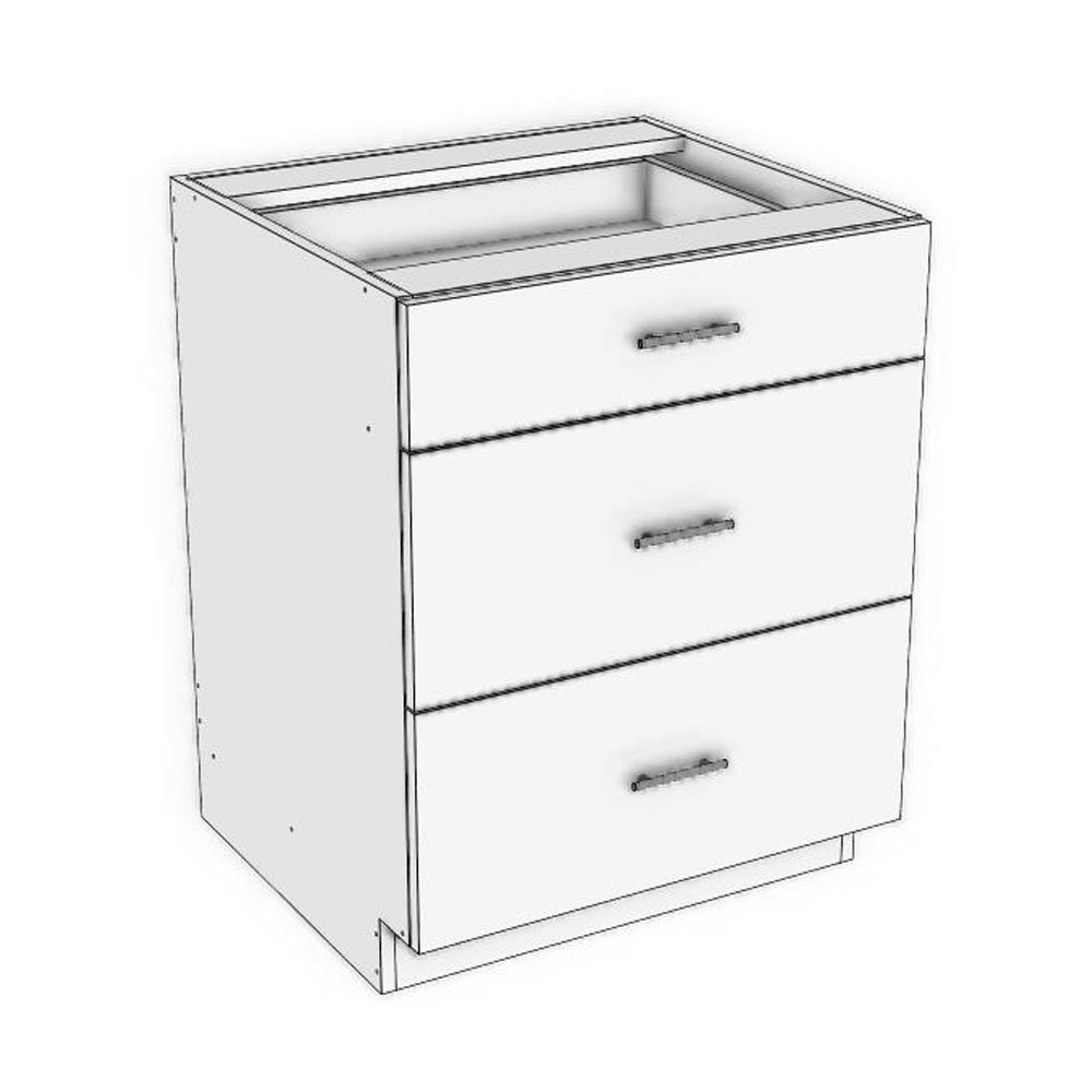 27" width x 24" depth x 34 1/2" height base cabinet with 3 drawers