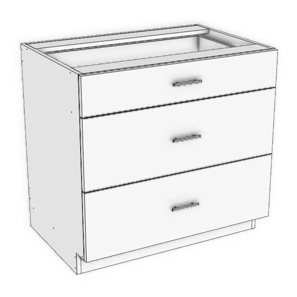 36" width x 24" depth x 34 1/2" height base cabinet with 3 drawers