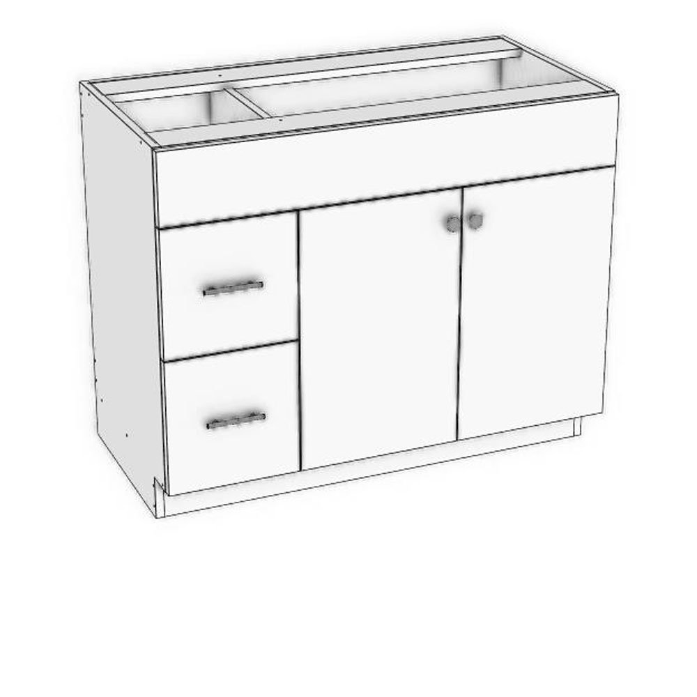 42" width x 21 3/4" depth x 34 1/2" height vanity sink cabinet with 2 drawers on the left side, pair of doors and a false front