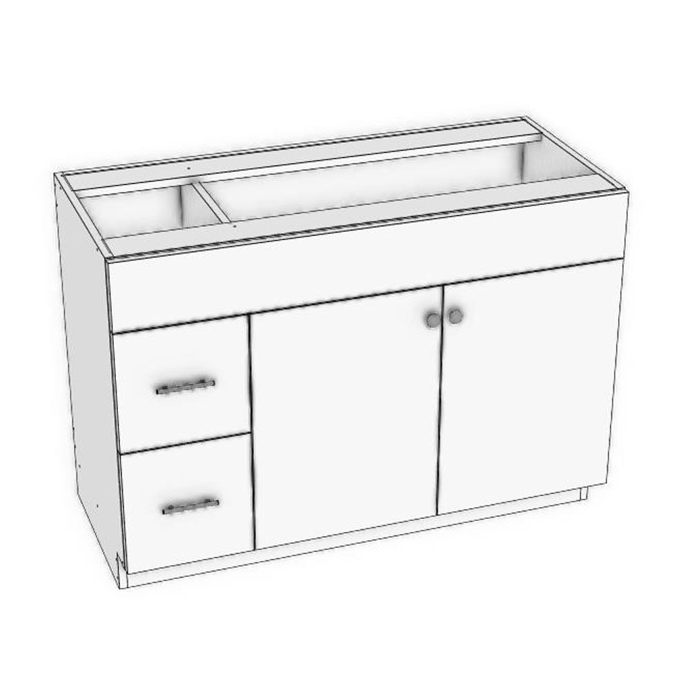 48" width x 21 3/4" depth x 34 1/2" height vanity sink cabinet with 2 drawers on the left side, pair of doors and a false front